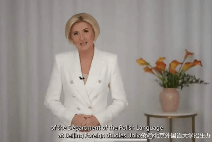 波兰共和国总统夫人阿加塔·柯恩豪瑟-杜达(Agata Kornhauser-Duda)发来祝贺视频。她指出,北外波兰语专业在人才培养、文化交流方面所做的工作对于促进国际理解、深化中波友谊十分重要,希望未来波兰与中国能够在教育、文化等领域继续加深合作。