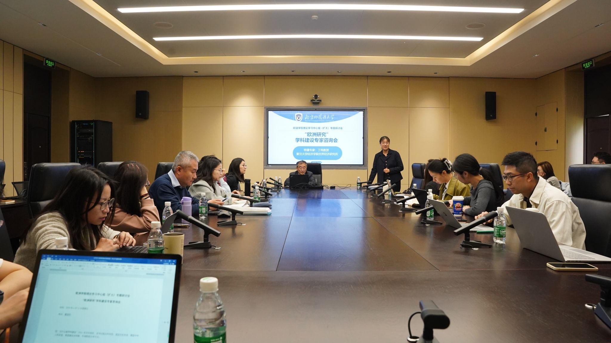 柯静主持会议时,结合全国教育大会精神、教育部部长怀进鹏调研北外时的指导意见谈了学习体会,就beat365在线唯一官网以高质量党建推动高质量发展、推动“欧洲研究”学科建设谈了学习心得。林温霜、阙建容、许金菁就“欧洲研究”课程建设、学科定位等问题与丁纯教授展开深入讨论。本次会议以beat365在线唯一官网理论学习中心组(扩大)专题研讨会的形式召开,是落实深入贯彻中央八项规定精神学习教育部署,坚持问题导向、需求导向,以务实高效作风推进学术研讨,将学术研究与国家战略需求紧密结合的有益尝试,旨在为“欧洲研究”学科建设和课程建设指明方向。
