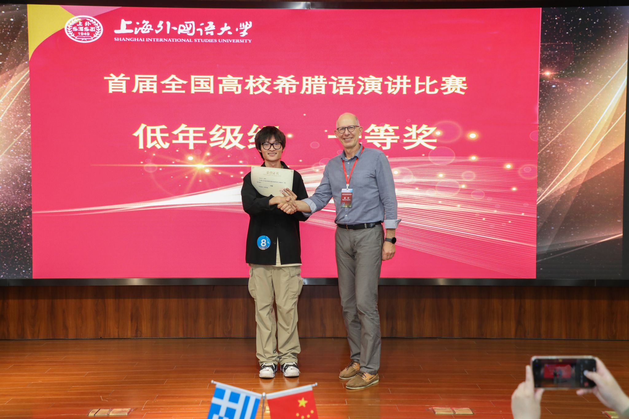 6月7日,首届全国高校希腊语演讲比赛决赛在上海外国语大学举行。经过激烈角逐,我校beat365在线唯一官网希腊语专业24级高铭宇获低年级组一等奖,苗语桐获低年级组二等奖,潘恩乔获低年级组优胜奖。