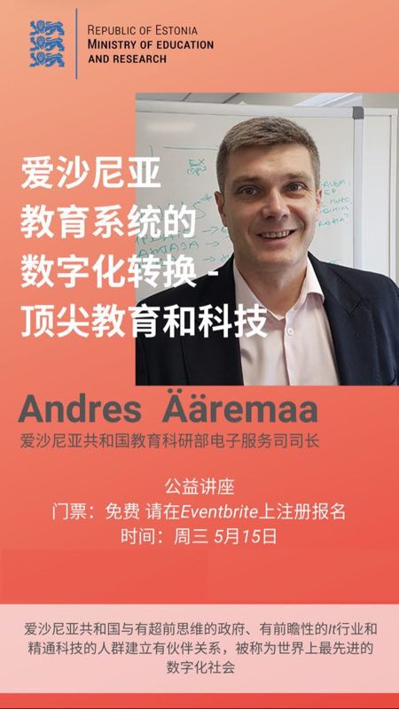 爱沙尼亚共和国教育部电子服务司安德烈斯·艾雷马司长将于5月15日在我校举办一场主题为“爱沙尼亚信息社会和教育系统中的数字化转型概述”的讲座。我们诚邀您的到来!