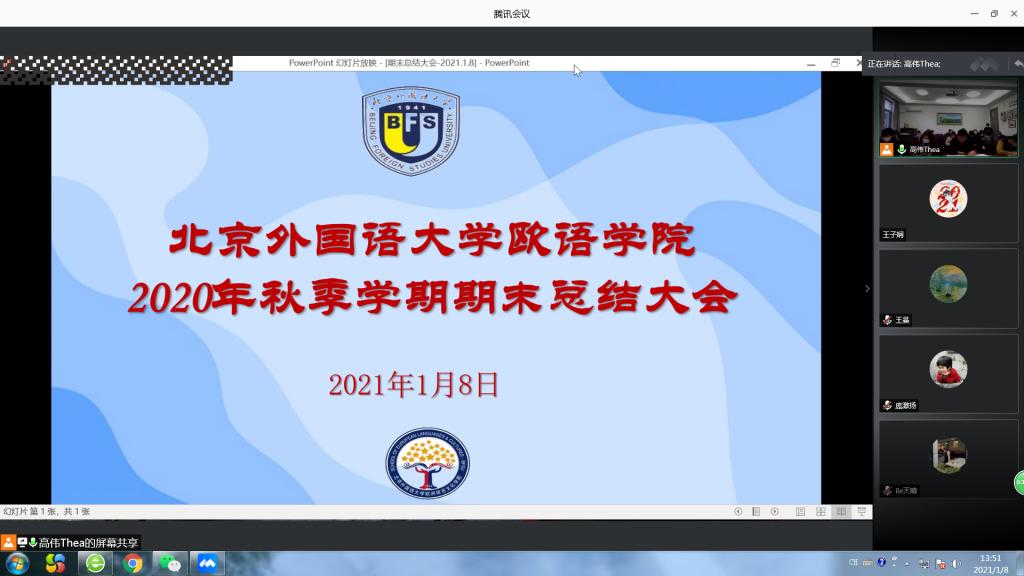 2021年1月8号中午1点,beat365在线唯一官网采取线上与线下相结合的方式召开2020年秋季学期期末工作总结会。学院党政领导和全体教师参会,会议由赵刚院长主持。