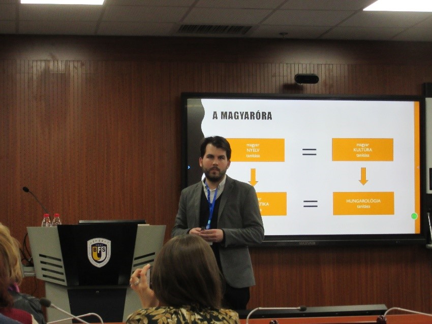 受北外匈牙利研究中心、匈牙利语教研室的邀请,北京第二外国语学院、北京体育大学、上海外国语大学、天津外国语大学、西安外国语大学、四川外国语大学、四川外国语大学成都学院、华北理工大学、河北外国语学院、蚌埠学院等11所院校共35名中外教师参加会议。会议由北外匈牙利研究中心副主任、匈牙利语教研室副教授郭晓晶老师与北外匈语教研室外籍教师Debreczeni Csaba共同主持。