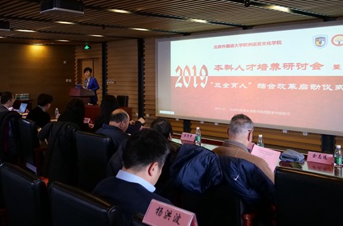为贯彻落实全国教育大会和新时代全国高等学校本科教育工作会议精神,大力提升本科人才培养质量,1月14日,2019年欧洲语言文化学院本科人才培养研讨会暨“三全育人”综合改革启动仪式在图书馆举行。会议着重研讨新时期北外欧洲非通用语人才培养的目标、模式与路径,围绕人才培养目标与路径、教材与工具书建设、课程建设与现代教学手段应用等议题展开研讨。