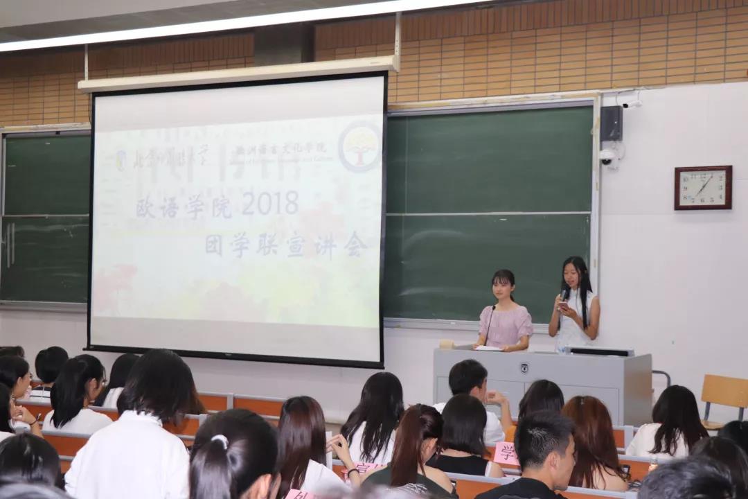 9月9日晚,欧洲语言文化学院团学联宣讲大会在逸夫楼二阶举行。在欧阳子仪和刘卓尔的主持下,大会现场气氛活跃,取得了圆满成功。